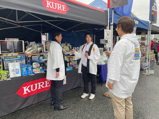 また今回は、チャンネル登録者数15万人を誇る洗車系YouTubeチャンネル「ビューティフルカーズ」を運営する株式会社ホワイトシード(秋田市、村上篤社長)の村上社長と佐藤取締役をゲストに迎え、出展メーカーへのインタビューや来店客の洗車に関するお悩み相談などを行っていただきました。